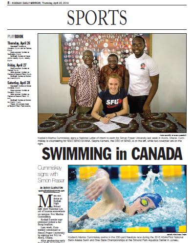 The Kodiak Daily Mirror, a local newspaper in Alaska, features SEND GHANA intern Marina Cummiskey.