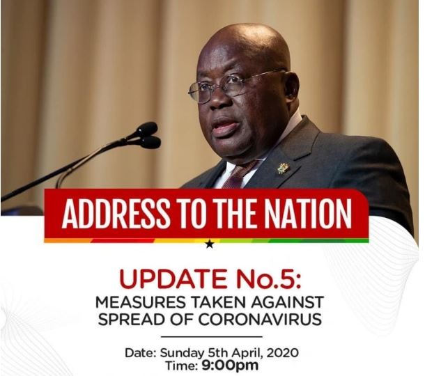 Address To The Nation By President Of The Republic, Nana Addo Dankwa Akufo-Addo, On Updates To Ghana’s Enhanced Response To The Coronavirus Pandemic, On Sunday, 5th April, 2020.