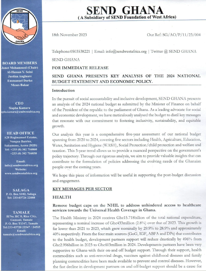 PRESS RELEASE- SEND GHANA PRESENTS KEY ANALYSIS OF THE 2024 NATIONAL BUDGET STATEMENT AND ECONOMIC POLICY.pdf